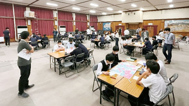 地域課題に対して、解決策を考案しチームで発表を行う。