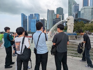 滝川高校B班シンガポール研修旅行2日目、午前中はシンガポール大学で探求活動のプレゼンを行いました。緊張した様子でしたが、現地の大学生と充実した時間を過ごしました。 午後はマーライオン公園、チャイナタウン、国立博物館と観光名所を周りました。