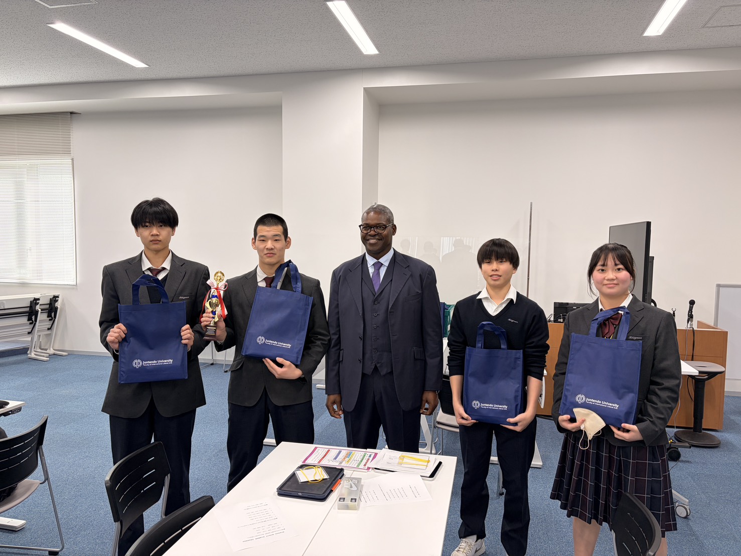 各班の発表に、順天堂大学の先生方が講評してくださりました。最優秀賞(Global市民賞)に輝いたチームにはトロフィーが授与されました。