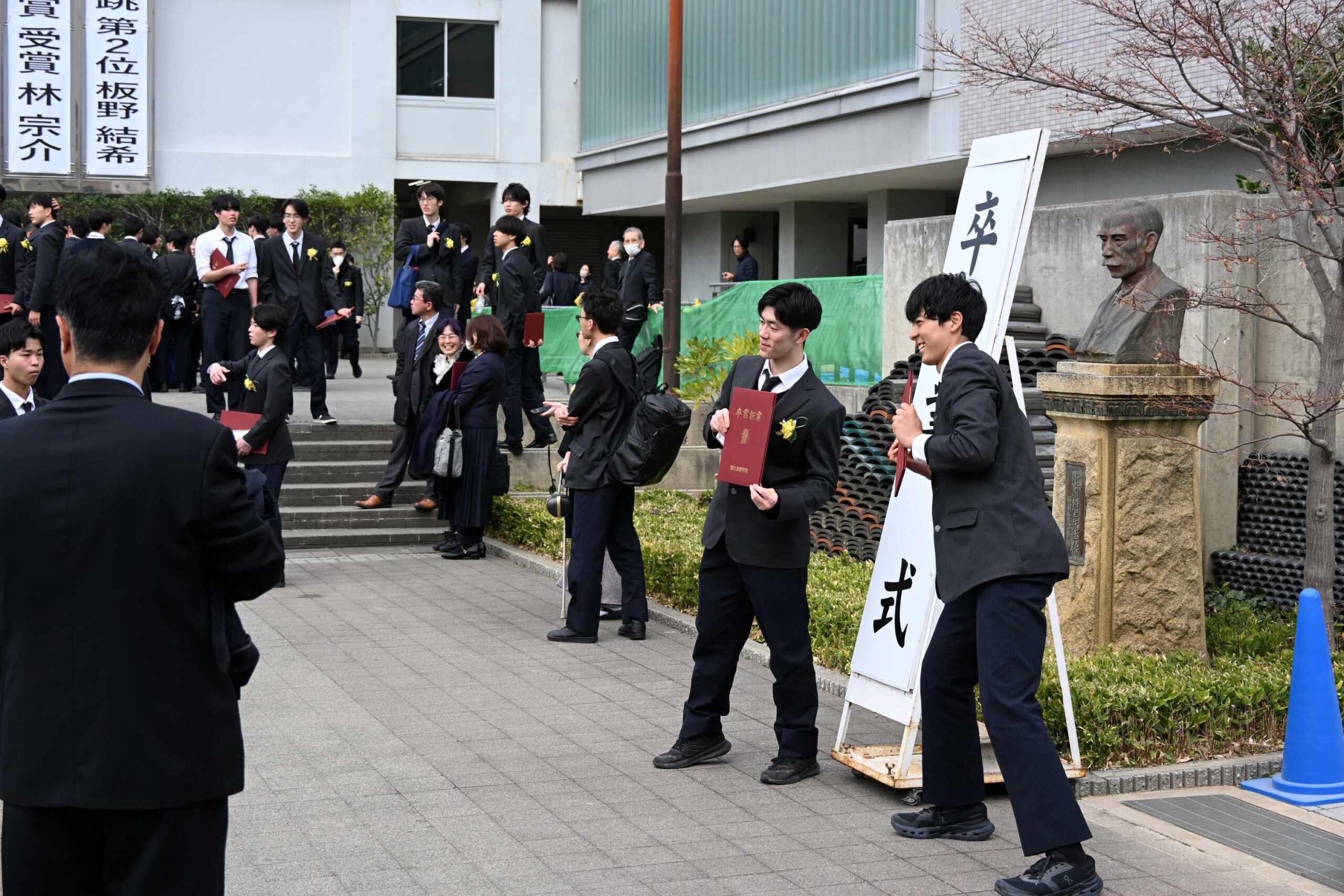 3月2日(月) 高校3年生(78回生)は無事卒業式を迎えました。8月に竣工した新体育館で初の式典です。天候にも恵まれ、厳かな式典となりました。卒業生には社会に出て立派に活躍してもらいたいものです。